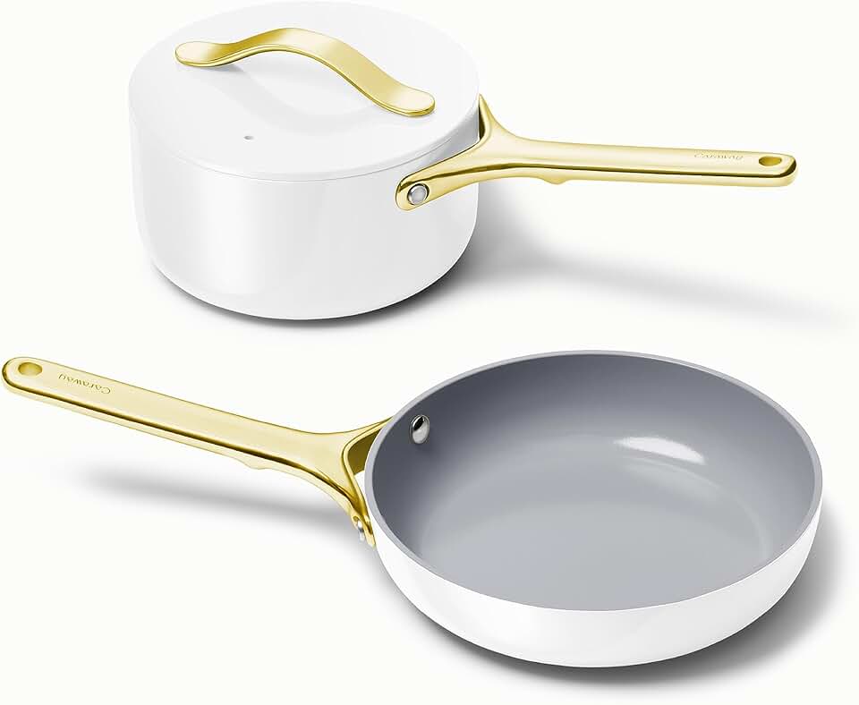 Caraway Mini Cookware Set - Non-Stick Ceramic Fry Pan (1.05 qt, 8") & Sauce Pan (1.75 qt) - Non Toxic, PTFE & PFOA Free - Oven Safe & Stovetop Agnostic (Gas, Electric & Induction) - White