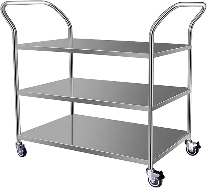 OOCCO 3 Layers Tray Rolling Clinic Cart,Stainless Steel Frame,Lab Rolling Cart,360°Rotation Storage Shelf,Ergonomic Handle,for Garage, Workshop, Warehouse & Repair Shop, 70*50*90cm