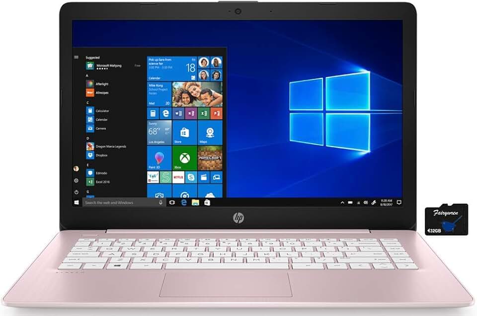 HP 2021 Stream 14 inch HD Laptop PC, Intel Celeron N4000, 4GB RAM, 64GB eMMC, WiFi, Bluetooth, Webcam, HDMI, Windows 10 S with Office 365 Personal for 1 Year + Fairywren Card (Rose Pink)