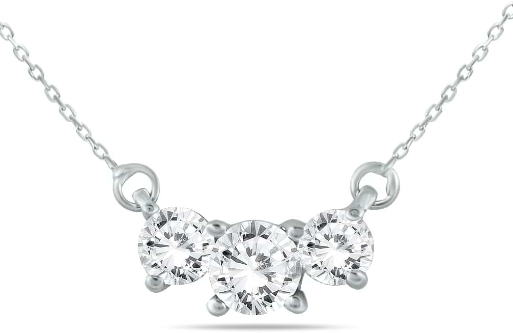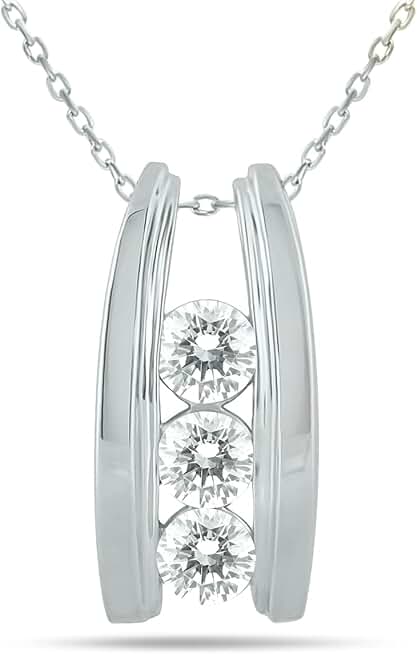 1 Carat TW Three Stone Diamond Pendant Available in 14K White and Yellow Gold