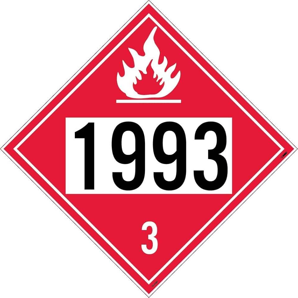NMC DL40BR50 Placard, Four Digit 1993, 10 3/4X10 3/4, Rigid Plastic, Pk50