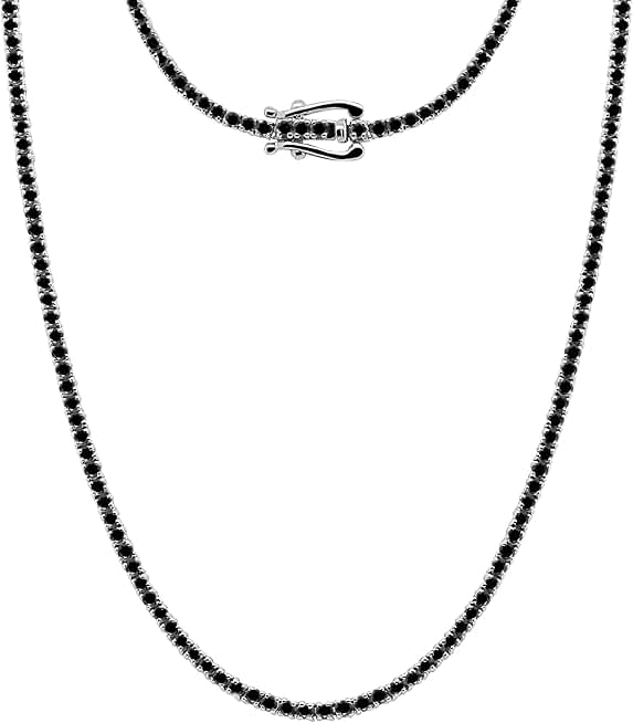 4.50 Carat Round Cut Natural Black Diamond Tennis Necklace in 14K White Gold Plated Sterling Silver Tennis Necklace For Men's & Women's 18" inch Necklace