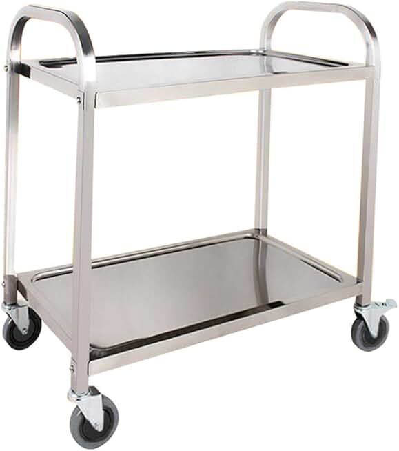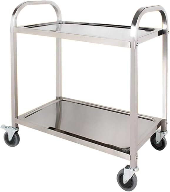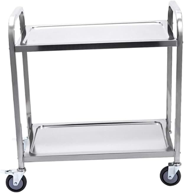 Trolley,Cart,Household Multi-Layer Trolleys,Cart Hotel Bar 2 Layer Steel Handle Pushbar Steel Nail Reinforcement High Temperature Resistance Easy Clean, 3 Sizes,Silver,95X50X95Cm