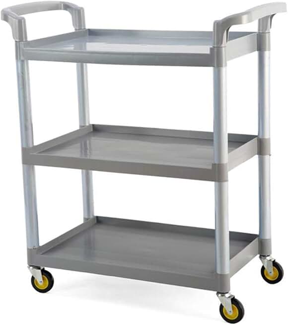 Trolley,Cart,Household Multi-Layer Trolleys,Cart Restaurant Hotel 3 Layers Plus Thick with Pulley Arcuate Handle Multifunction Easy to Assemble,Gray,103X51X96Cm