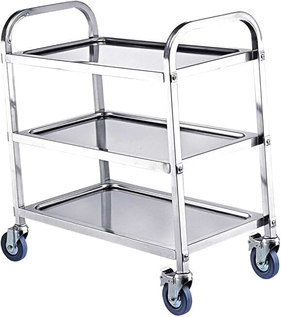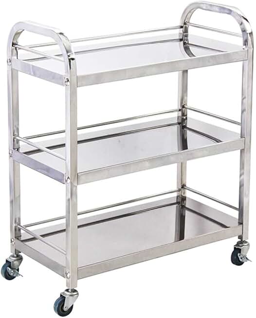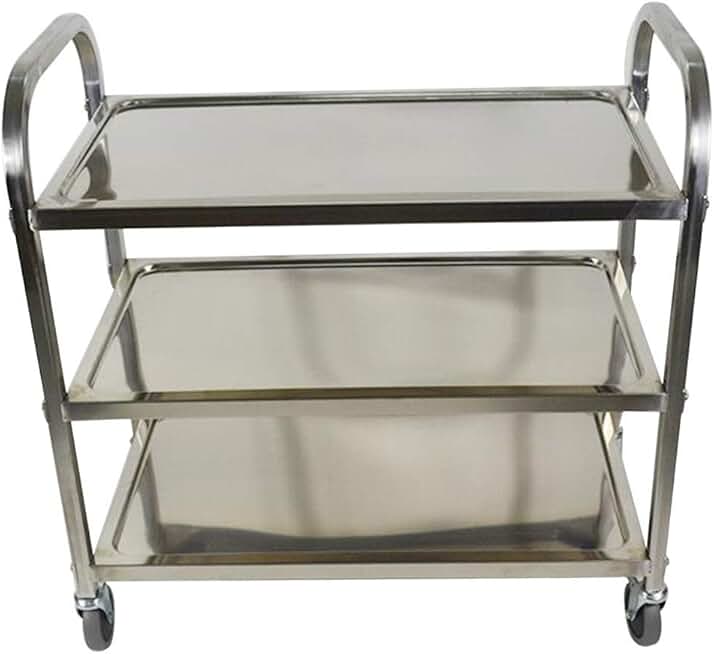Trolley,Cart,Household Multi-Layer Trolleys,Cart Service Bar Warehouse Steel Handle Pushbar 360 Degrees Free Rotation High Capacity Easy Clean, 3 Sizes,Silver,90X45X85Cm