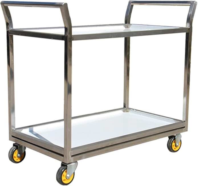 Trolley,Cart,Household Multi-Layer Trolleys,Cart Service Outdoor Garage 2 Layer Steel Handle Pushbar Multifunction Easy to Move,Silver,90X50X80Cm