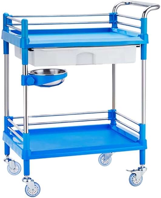 Multifunctional Portable Trolleys with Wheels,Beauty Utility Trolley Serving Cart with Two Drawers, Abs Tray and Stainless Steel Frame,Blue,73×53×90Cm