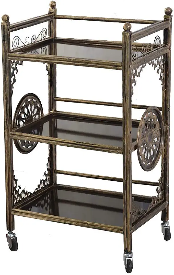LXX Recycling Vehicles,Retro Gold Salon Hairdressing Beauty Cart Trolley with Wheels, 3 Tiers Storage Organizer Shelf for Spa Tattoo,Collecting Vehicles