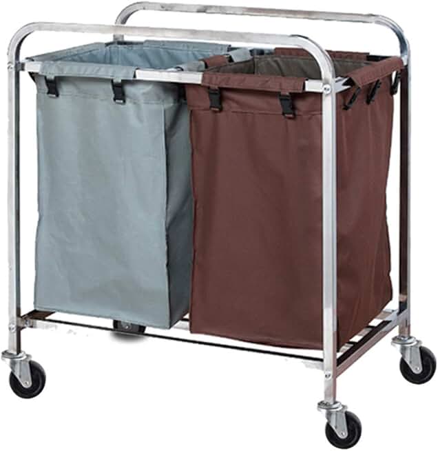 Multifunctional Portable Trolleys with Wheels,Mobile Double Bag Laundry Hamper Sorter Cart, Stainless Steel, Commercial/Laundry Sorter/Home Use