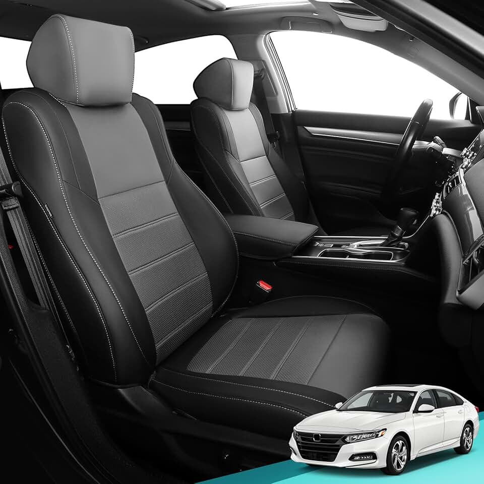 Custom for Honda Accord Seat Covers EX, 2023 2024 2025 EXL Hybrid,Sport Hybrid,Sport-L Hybrid,Touring, Black Grey Leather Car Seats Cover Full Set for car,Waterproof Protector