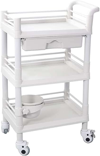 INDYAH Movable Trolleys, Kitchen Storage Hand Trucks, 3 Shelf Cart Utility Service Trolley,Abs Beauty Salon Cart with Handles and Dirt Bucket/White/54X37X98Cm