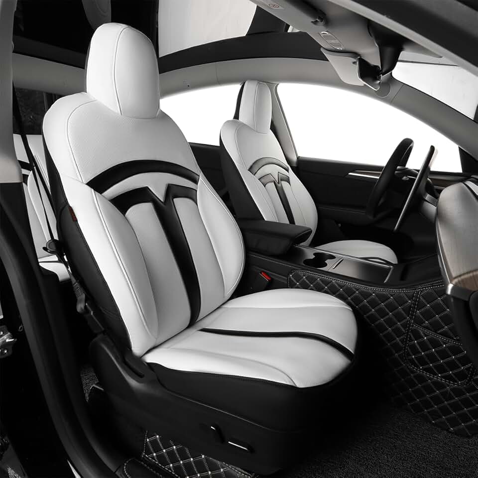 Custom Fit Cybertruck Car Seat Covers for Select Trucks Tesla 2024 Cybertruck - Full Set, Leather(Black/White)
