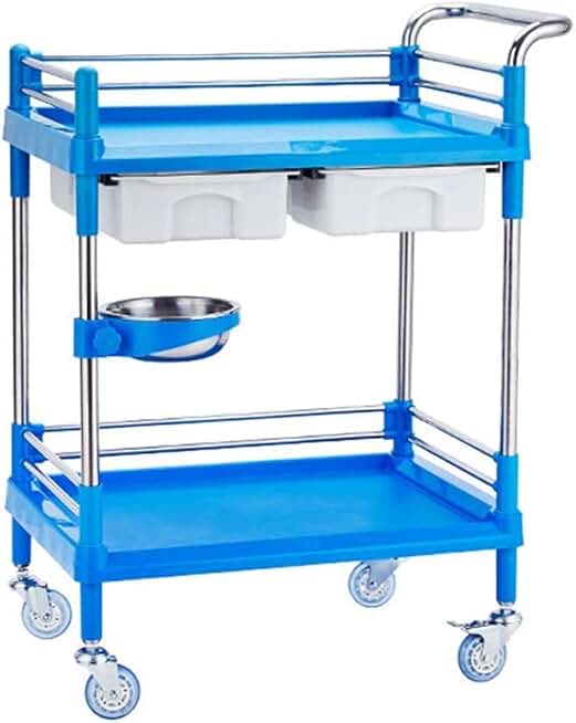 INDYAH Movable Trolleys, Kitchen Storage Hand Trucks, 2 Tier Stainless Steel Beauty Salon Rolling Trolley,Hospital/Dental Clinic Cart,Universal Brake Wheel/a/S-60X40X86Cm