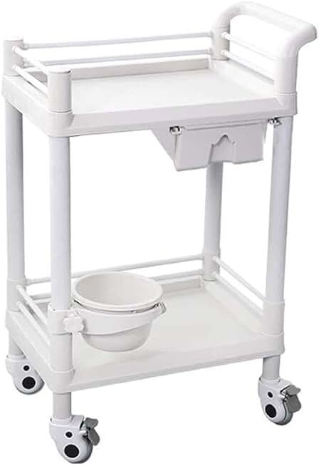 INDYAH Movable Trolleys, Kitchen Storage Hand Trucks, Beauty Salon Trolley with Drawer Tool Cart,Abs Multi Purpose Rolling Storage Cart/White/64X44X90Cm