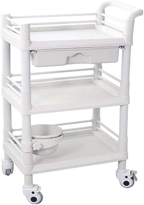 INDYAH Movable Trolleys, Kitchen Storage Hand Trucks, 3 Tier Service Cart Trolley,Abs Beauty Salon Utility Rolling Cart/White/54X37X98Cm