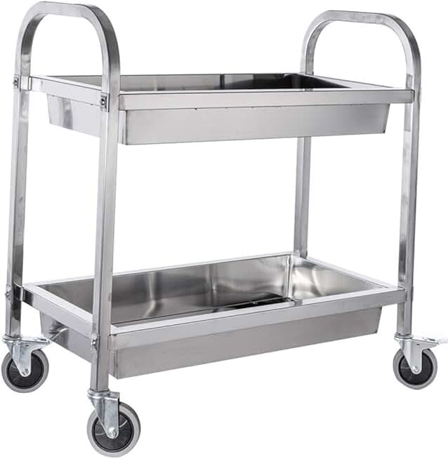 Trolley,Cart,Household Multi-Layer Trolleys,Cart Service Garage Hotel Storage Arcuate Handle Steel Nail Fixing Easy to Assemble, 3 Sizes,Gray,75X40X83.5Cm