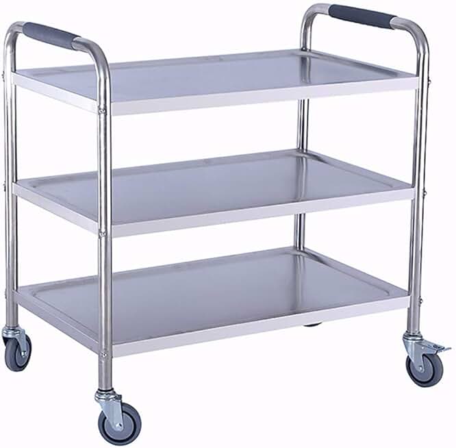 Trolley,Cart,Household Multi-Layer Trolleys,Cart Service Restaurant Warehouse 3 Layers Steel Handle Pushbar Multifunction Easy Clean, 3 Sizes,Silver,90X50X92Cm
