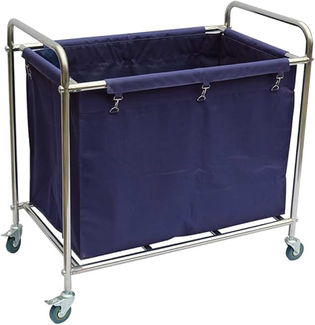 INDYAH Movable Trolleys, Kitchen Storage Hand Trucks, Beauty Salon Trolley Heavy Duty Rolling Laundry Cart Capacity Linen Cart with Movable Fabric Bags/Blue/Large
