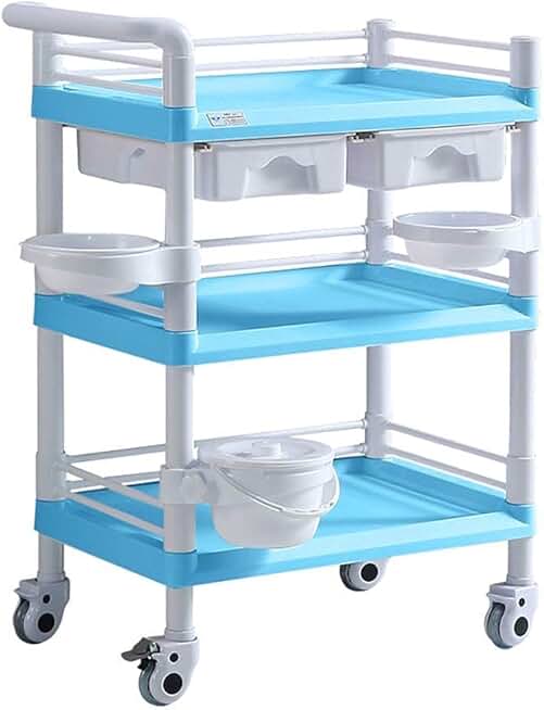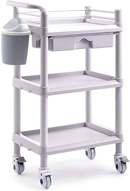 INDYAH Movable Trolleys, Kitchen Storage Hand Trucks, 3-Tier Service Cart with Drawers,Abs Trolley Treatment Tool Car,Multi Purpose Beauty Salon Rolling Cart/Style1/Large