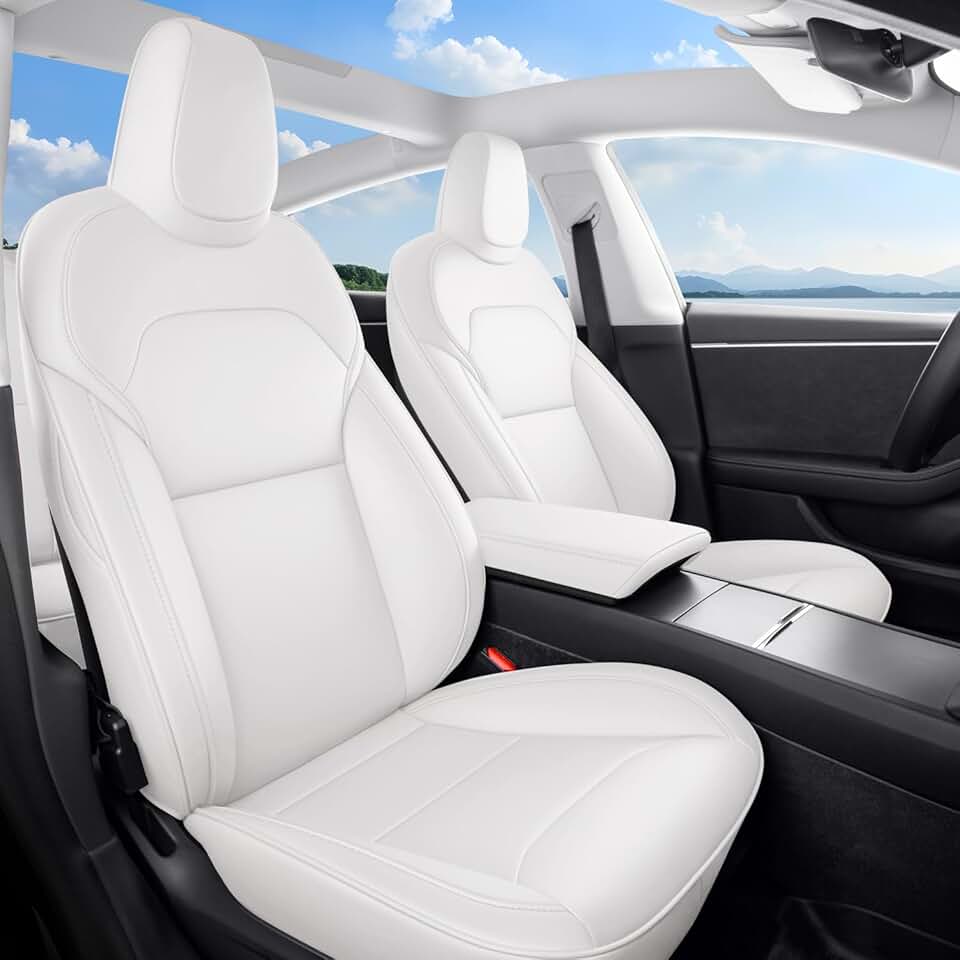 2024 Tesla Model 3 Highland Upgraded Car Seat Covers Nappa Leather Car Interior Seat Airbag Compatible Cushion Cover Full Set Custom Fit 2024 Model 3, Organosilicon White
