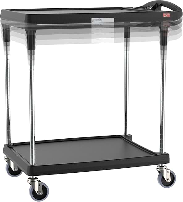 Metro myCart Plus Utility Cart - Choose-Your-Height Adjustable Heavy Duty Rolling Cart for Home, Commercial and Industrial Use - 2-Shelf, 300 lbs Capacity - 23.9" W x 34.4" L x 35.5-39.5" H - Black