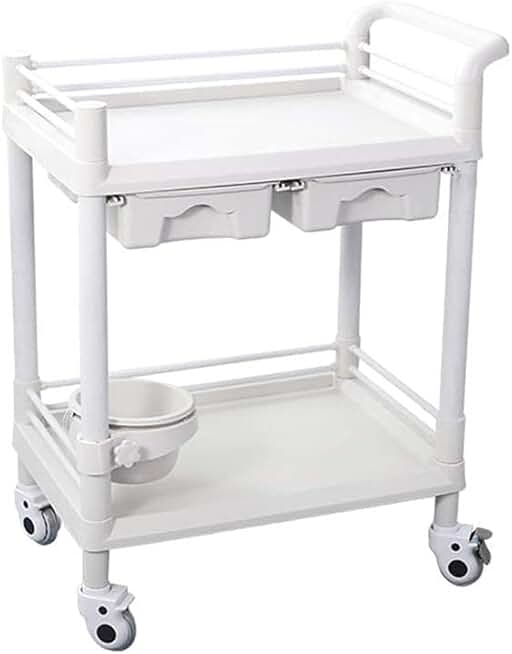INDYAH Movable Trolleys, Kitchen Storage Hand Trucks, Beauty Salon Trolley Abs Storage Cart,with Double Drawers,Multi Purpose Rolling Trolley for Dentistry/White/64X44X90Cm