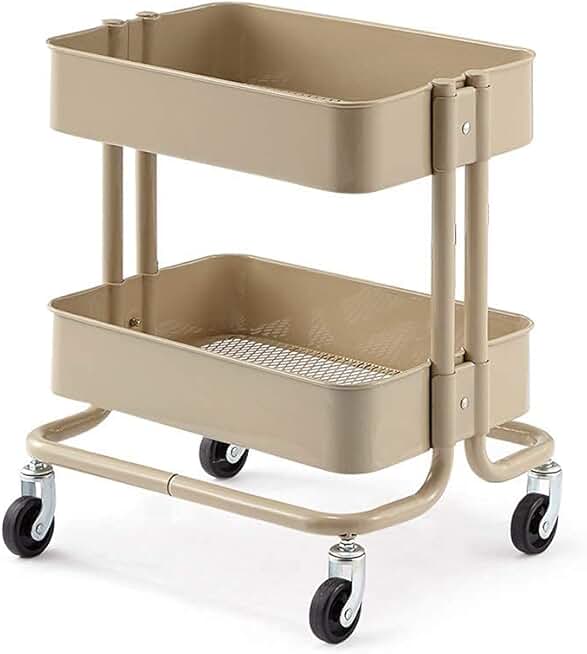 INDYAH Movable Trolleys, Kitchen Storage Hand Trucks, Beauty Salon Trolley 2 Tier,Carbon Steel Dentistry Storage Cart,Hairdresser Rolling Cart with/Khaki/45X35X50Cm