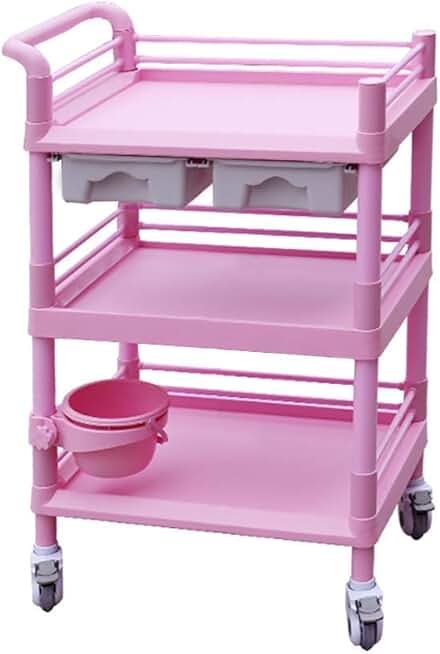 INDYAH Movable Trolleys, Household Serving Cart 3 Shelf 2 Drawer Rolling Instrument Cart on Silent Wheel for Hospital, Beauty Nail Salon Spa Tool/Pink/76X53X98Cm