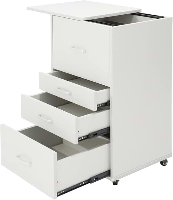 Medical Dental Assistant's Mobile Cabinet Alabama Cart Utility Cart 4 Drawer with Handle, Easy to Pull Out and Push Back. White