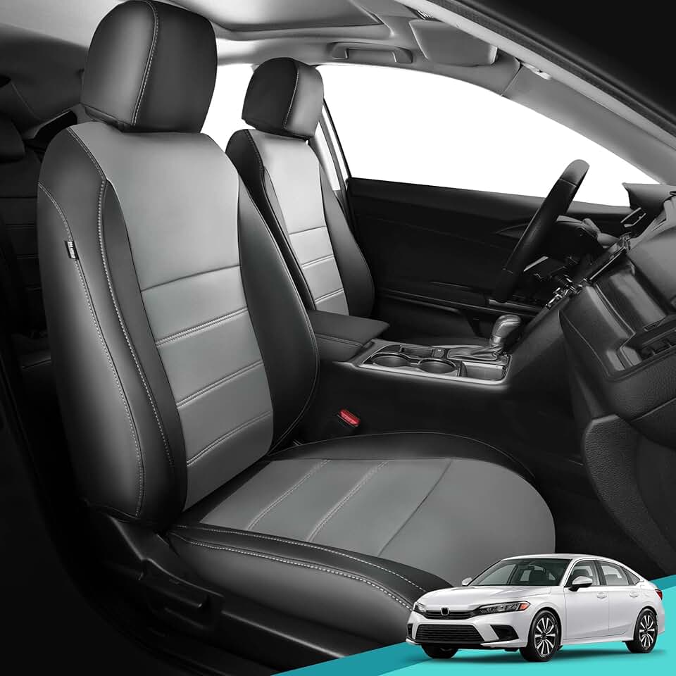 Seat Covers for Honda Civic Sedan 4DR Sedan EX 2022 2023 2024, Black Grey Leather Car Seats Cover Full Set for car