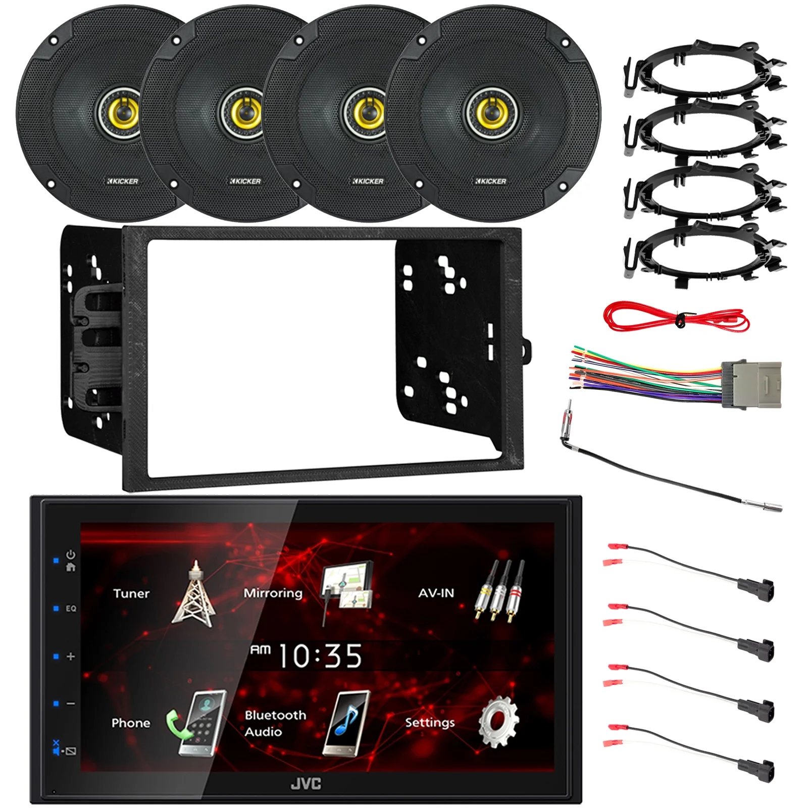 JVC KW-M180BT 6.8" Touchscreen Bluetooth USB Stereo Receiver, 4x Kicker CSC65 6.5" 300W Car Speakers w/Adapters, Radio + Speaker Harness, Antenna Adapter, Install Kit For Select 95-Up GM Vehicles