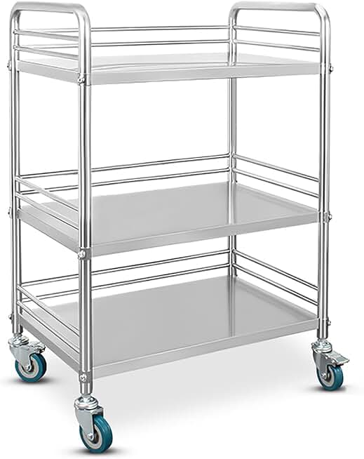 Utility Service Cart,stainless Steel Rolling Cart,with 360° Rotate Wheels Mobile Clinic Cart,Catering Cart,2 Universal Wheels,for Restaurant, Kitchen, Warehouse, Garage, Hotel, Home ( Color : 3 floors