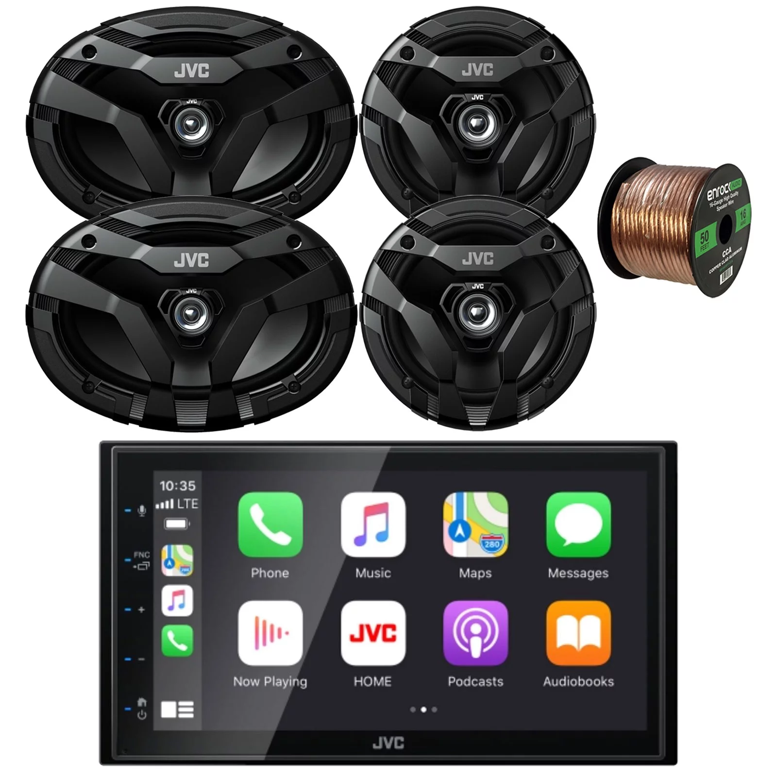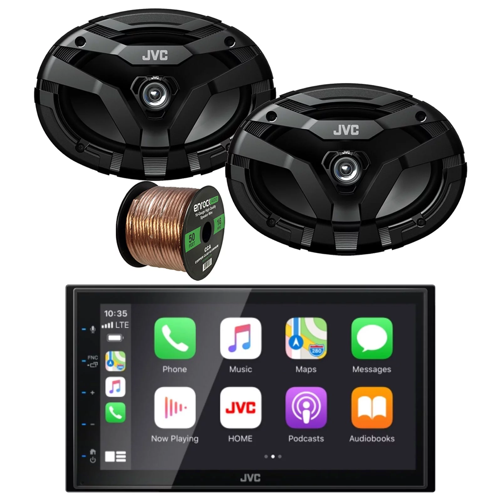 JVC KW-M560BT Double DIN AM/FM Radio Stereo Bluetooth USB Digital Media Car Receiver Bundle Combo with 2x 6x9" 2-Way Coaxial 400 Watts Peak Power Car Audio Speakers and 16G 50 Feet Speaker Wire