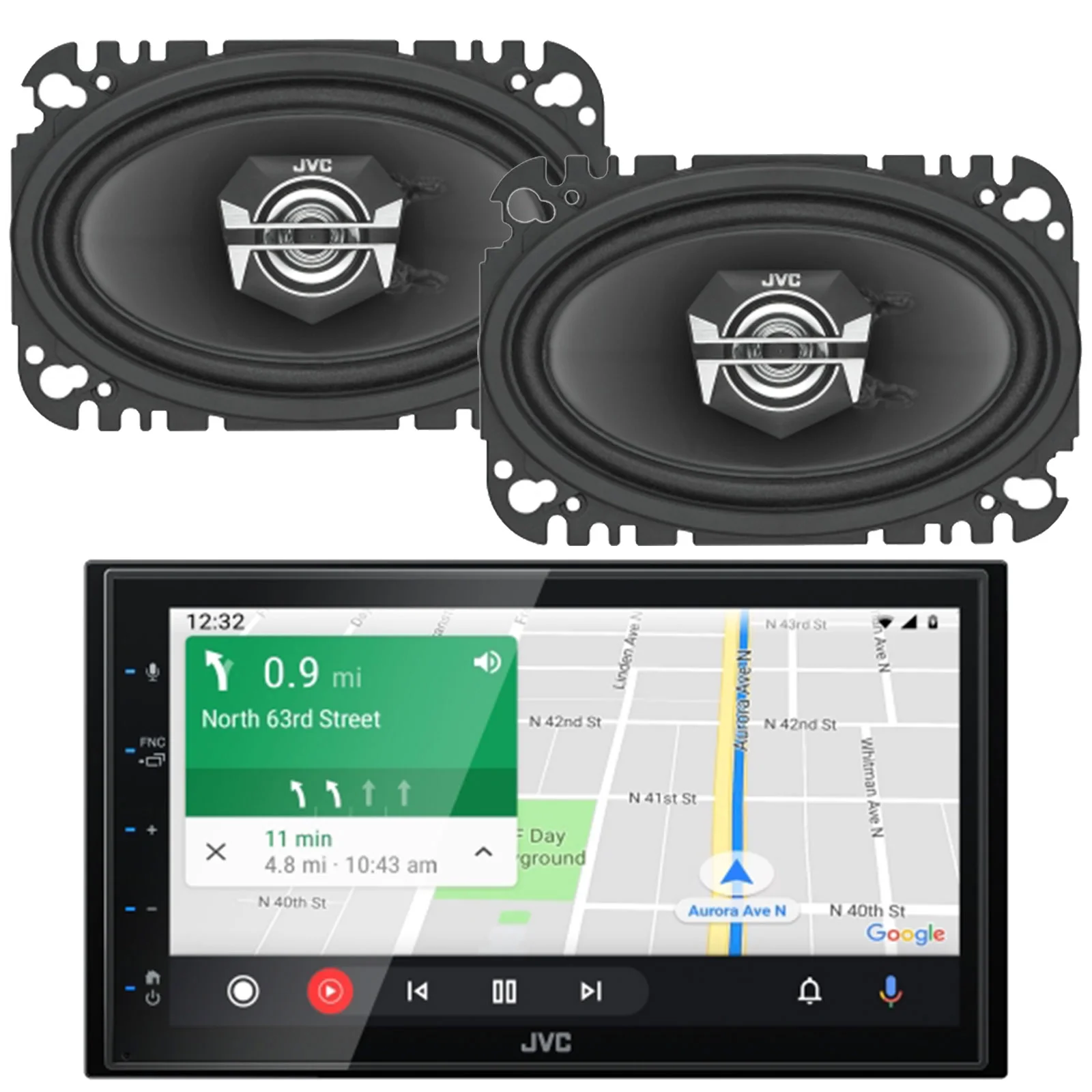 JVC KW-M56BT Digital Multimedia Receiver w/ fixed 6.75" Touchscreen Monitor+JVC CS-J620 6.5" 2-Way Coaxial Car Audio 600 Watt Speaker Pair