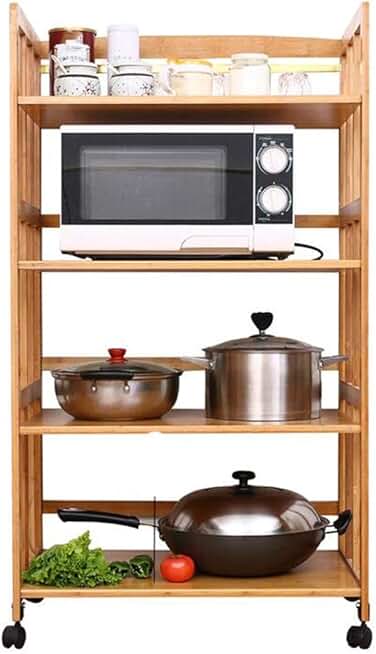 Trolley,Cart,Household Multi-Layer Trolleys,Cart Family Bar Bamboo Material Height Adjustable Swivel Castors Multifunction Easy to Assemble, 18 Sizes,Brown,102X123Cm