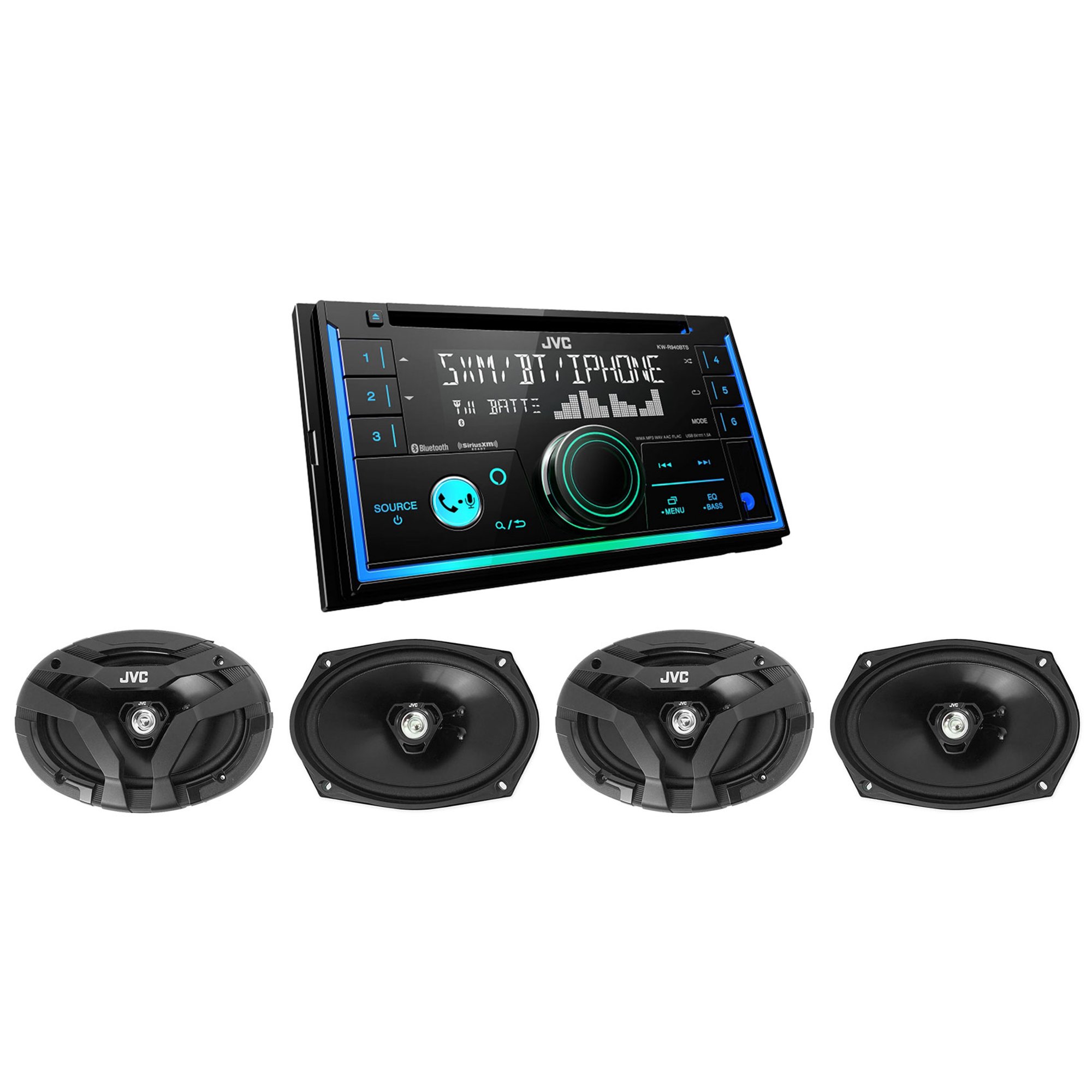 JVC KW-R940BTS 2-Din Bluetooth Car CD Receiver+(4) CS-DF620 300w 6.5" Speakers