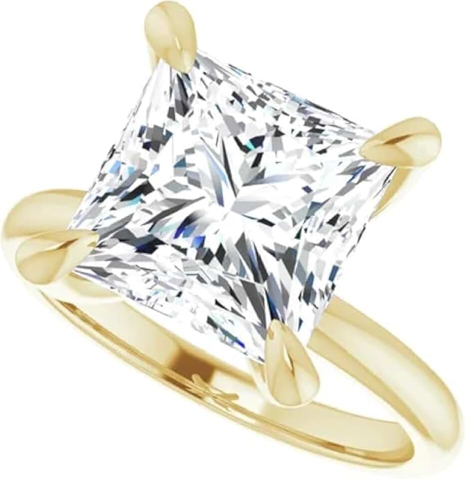 Handmade 925 Silver, 10K/14K/18K Solid Gold Engagement Ring, 4 Carats Princess Cut Moissanite Solitaire Ring, Wedding Bridal Rings for Women/Her Propose Gifts (925 Silver (Yellow Gold Plated))