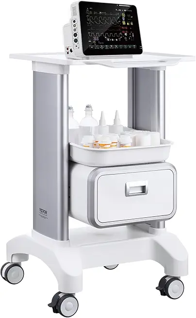 VEVOR Medical Trolley Storage Cart with Removable Drawer, Rolling Lab Cart Hospital Ultrasound Cart with Wheels and Trays, Mobile Utility Cart for Dental Clicnic, Lab, Beauty Salon, Office
