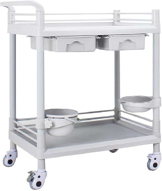 LXX Recycling Vehicles,Large Beauty Salon Nail Tool Cart, 2-Shelf Mobile Medical Instrument Tool Trolley with Wheels, Abs Frame, White, 75X52X84 cm (Size : Cart),Collecting Vehicles,Cart+2 Drawer