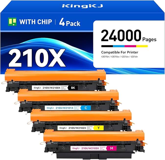 210X 210A Toner Cartridges 4-Pack with Chip Compatible for HP 210X 210A W2100A W2100X Color LaserJet Pro MFP 4301dw 4301dwe 4301fdn 4301fdne 4301fdw 4301fdwe 4201dn 4201dw Printer ink Black All-in-One