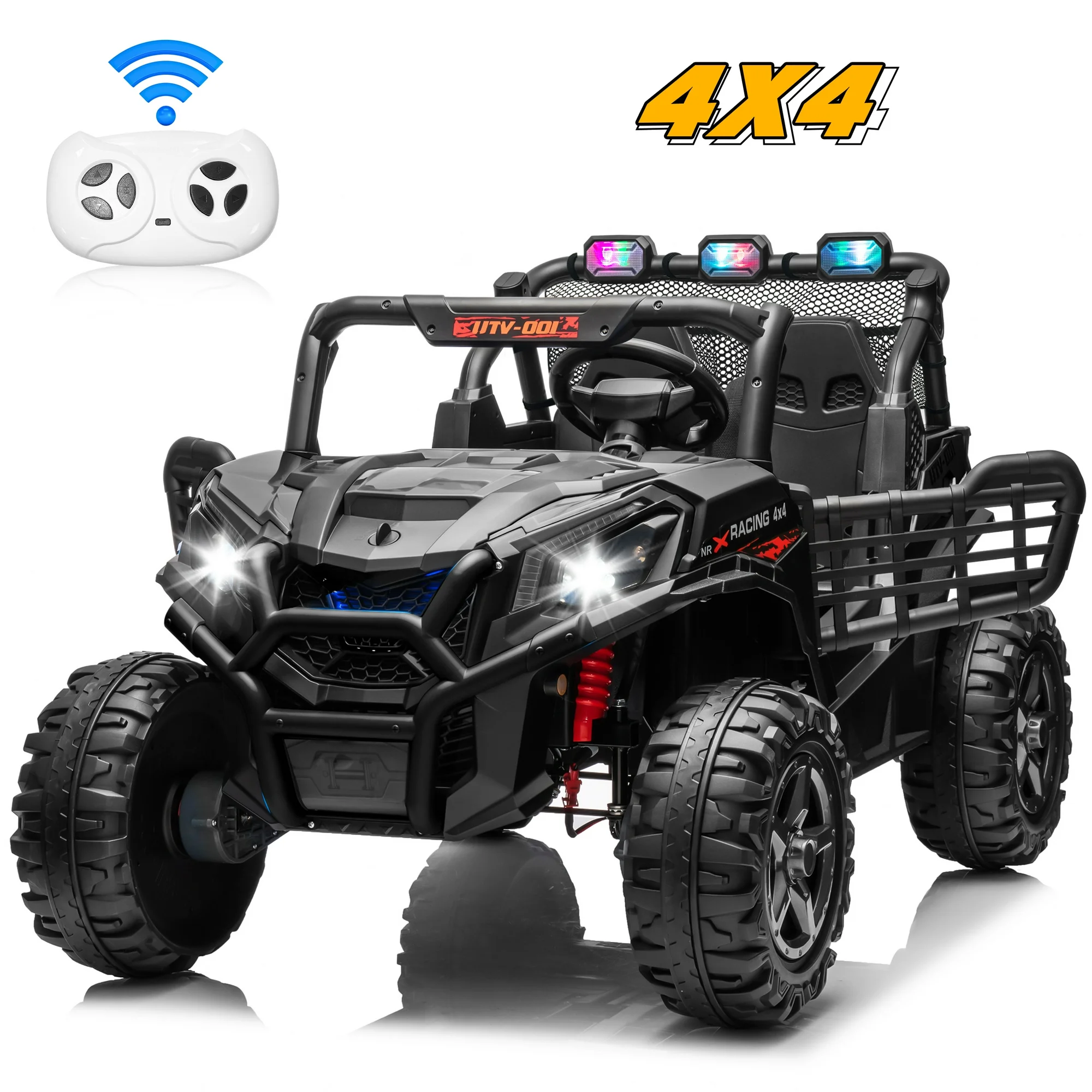 Joyracer 4WD 24V Ride on Toys Car w/ 2 XL Seater Remote Control, Electric Off-Road UTV w/ 4*200W Motor, Powered 4-Wheeler Toy, LED Lights, Spring Suspension, 3 Speeds, Bluetooth Music, Black