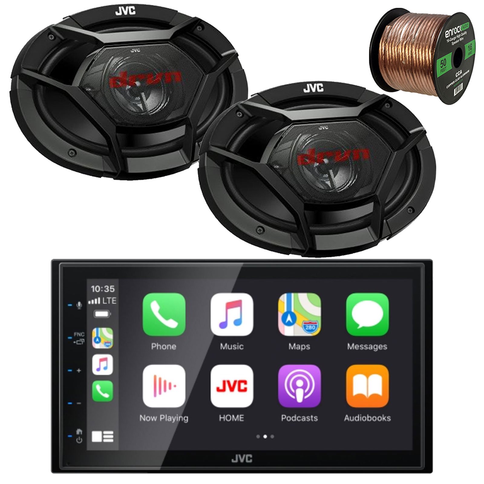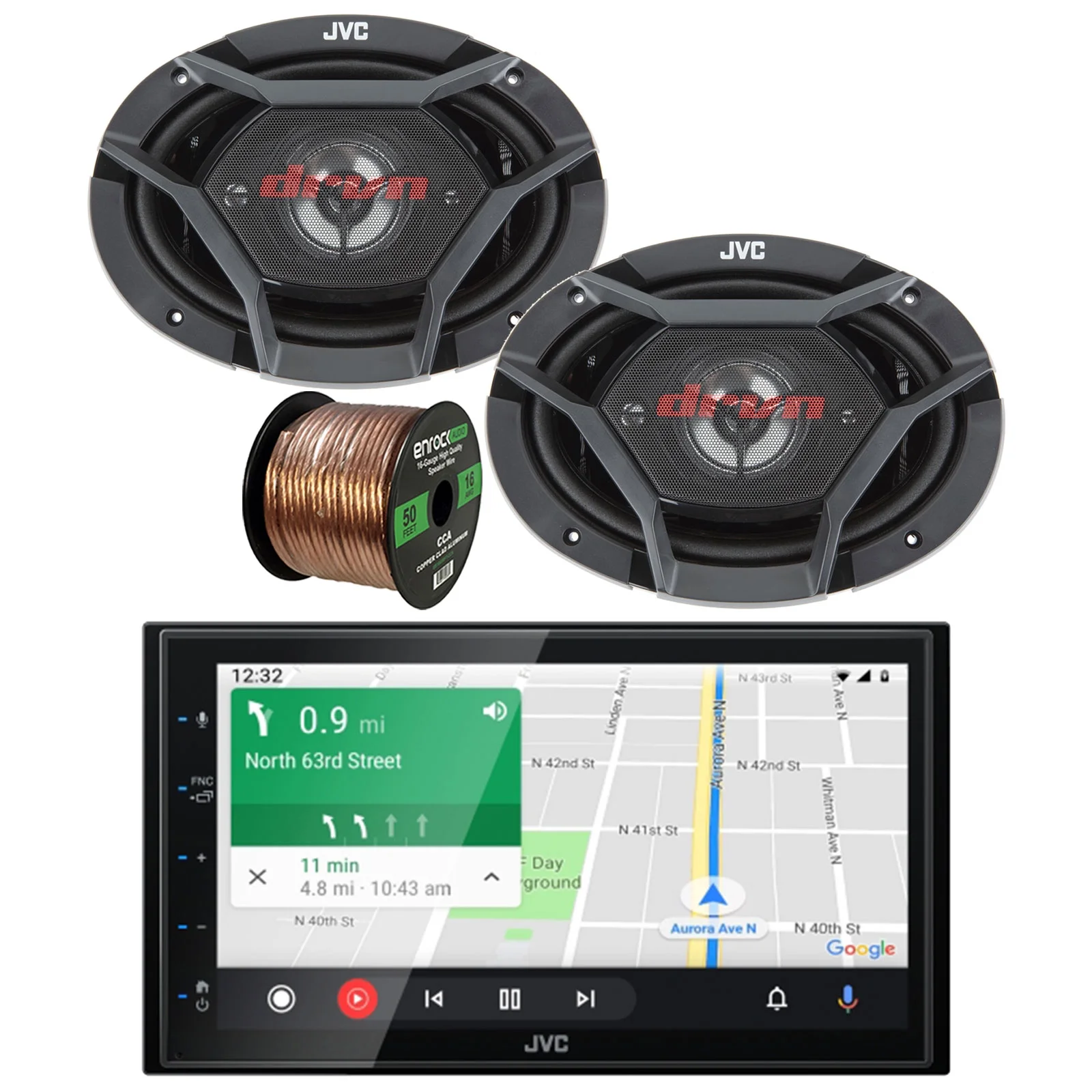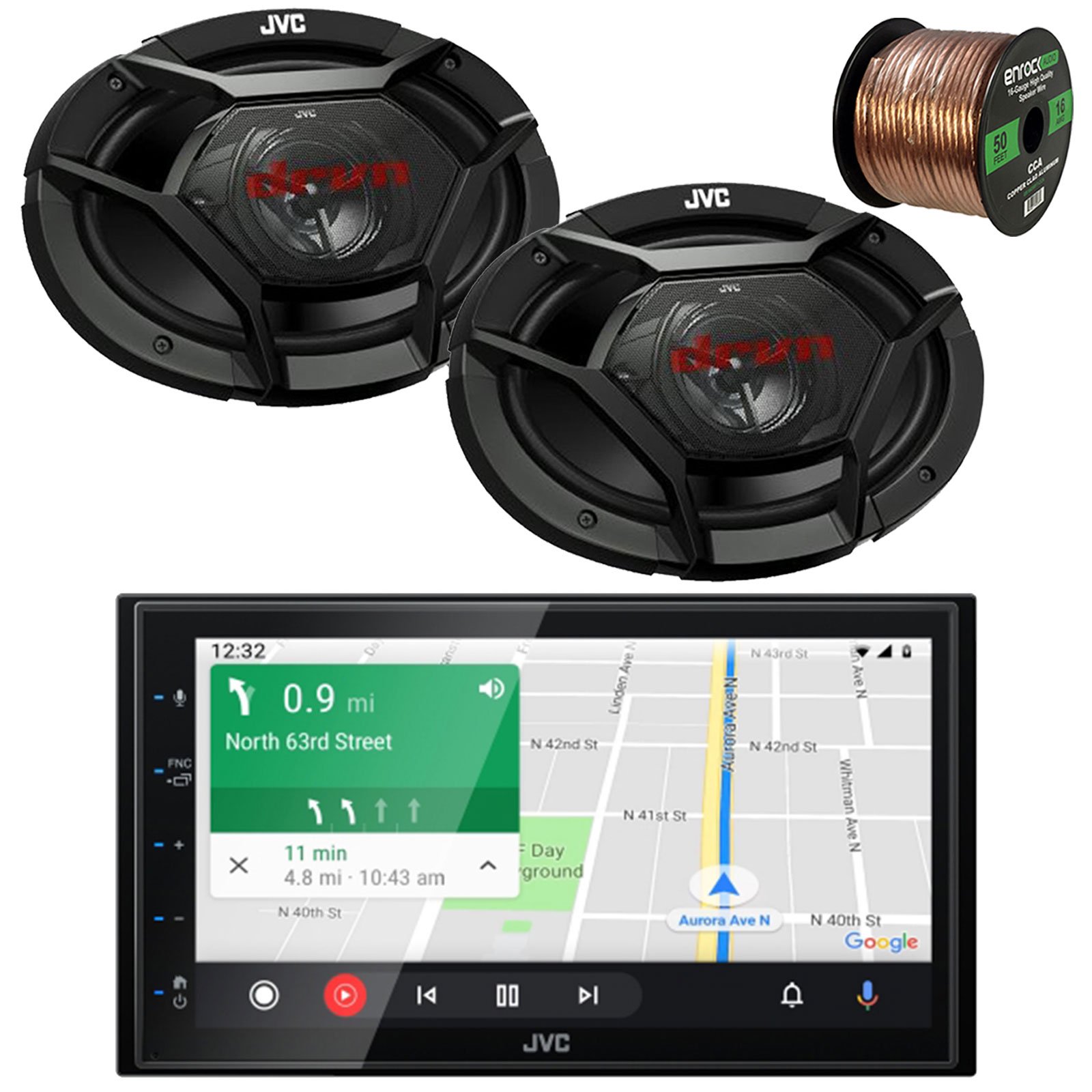 JVC KW-M56BT Double DIN AM/FM Radio Stereo USB Bluetooth Digital Media Audio Receiver Bundle Combo with 4x 6x9" 2-Way Coaxial 400W Peak Power Car Audio Speakers, 16 Gauge 50 Feet Speaker Wire