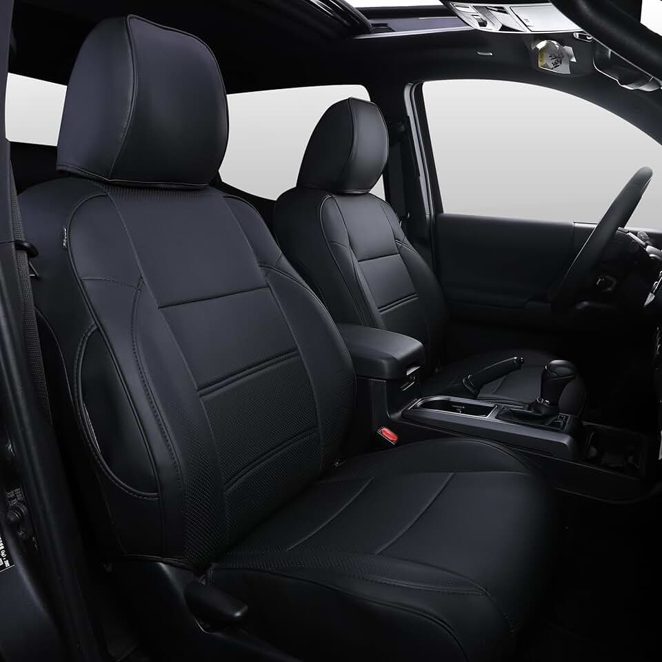 Car Seat Covers Full Set for Toyota Tacoma Crew Cab 2023 2022 2021 2020 2019 2018 2017 2016 Tacoma Interior Accessories Premium Faux Leather Breathable Waterproof (Pure Black)