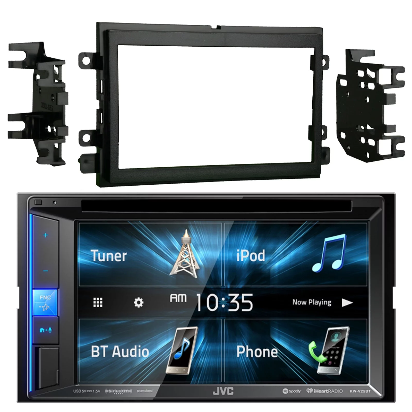 JVC KWV140BT Double DIN Bluetooth In-Dash DVD/CD/AM/FM Car Stereo Receiver w/Touchscreen with Metra 95-5812 Double DIN Installation Kit for Select 2004-up Ford Vehicles