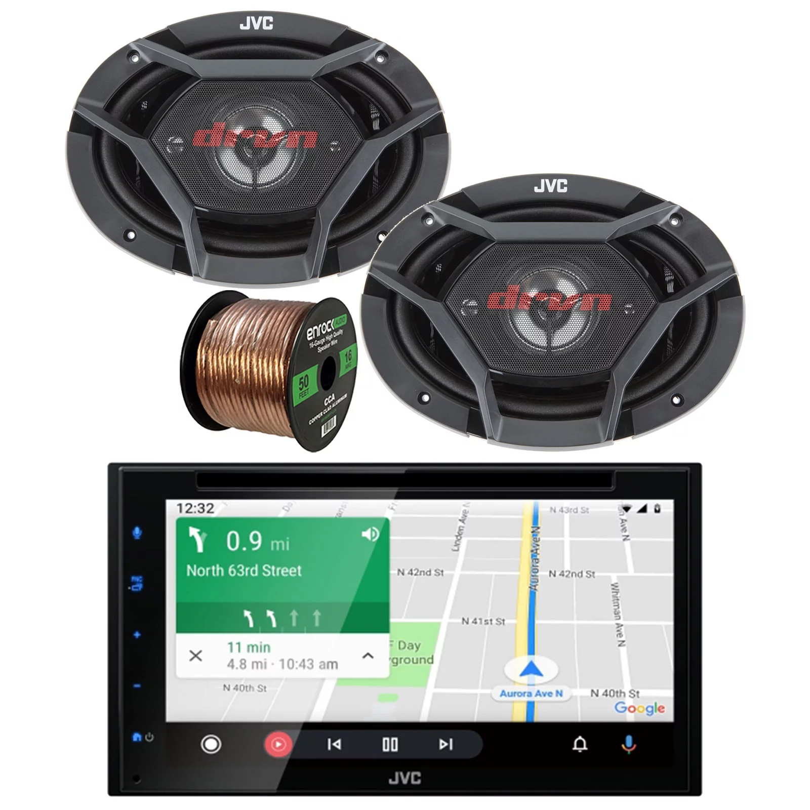 JVC KWV140BT Double DIN In-Dash DVD/CD/AM/FM Bluetooth Car Stereo Receiver w/ 6.2" Clear Resistive Touchscreen, 4x JVC CS-DR620 300-Watt Peak (50W RMS) 6.5" Inch 2-Way Factory Upgrade Coaxial Speakers