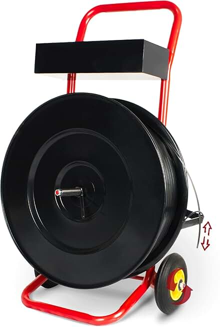 Heavy Duty 16" Strapping Cart, Strapping Dispenser for Poly/Plastic Steel/Fibre Strapping, Moveable Strapping Dispenser Deluxe Banding Cart with Built-in Tray(Red)