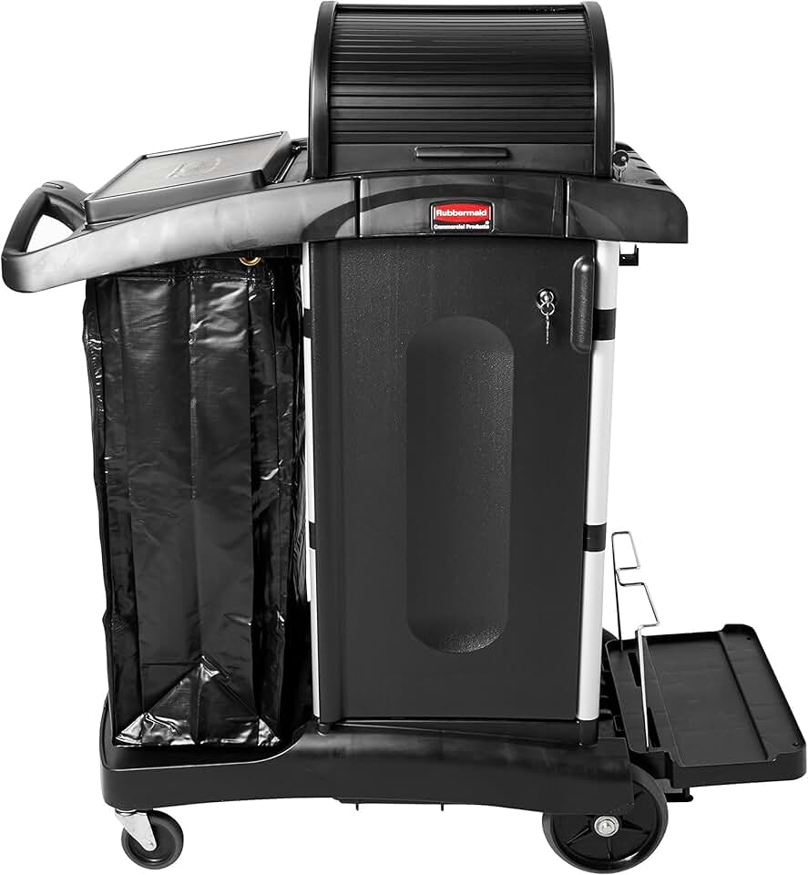 Rubbermaid Commercial Products Executive Series High-Security Housekeeping Cart with Wheels, Black, Locks for Added Security for Home/Hospital/Lab/Office Cleaning