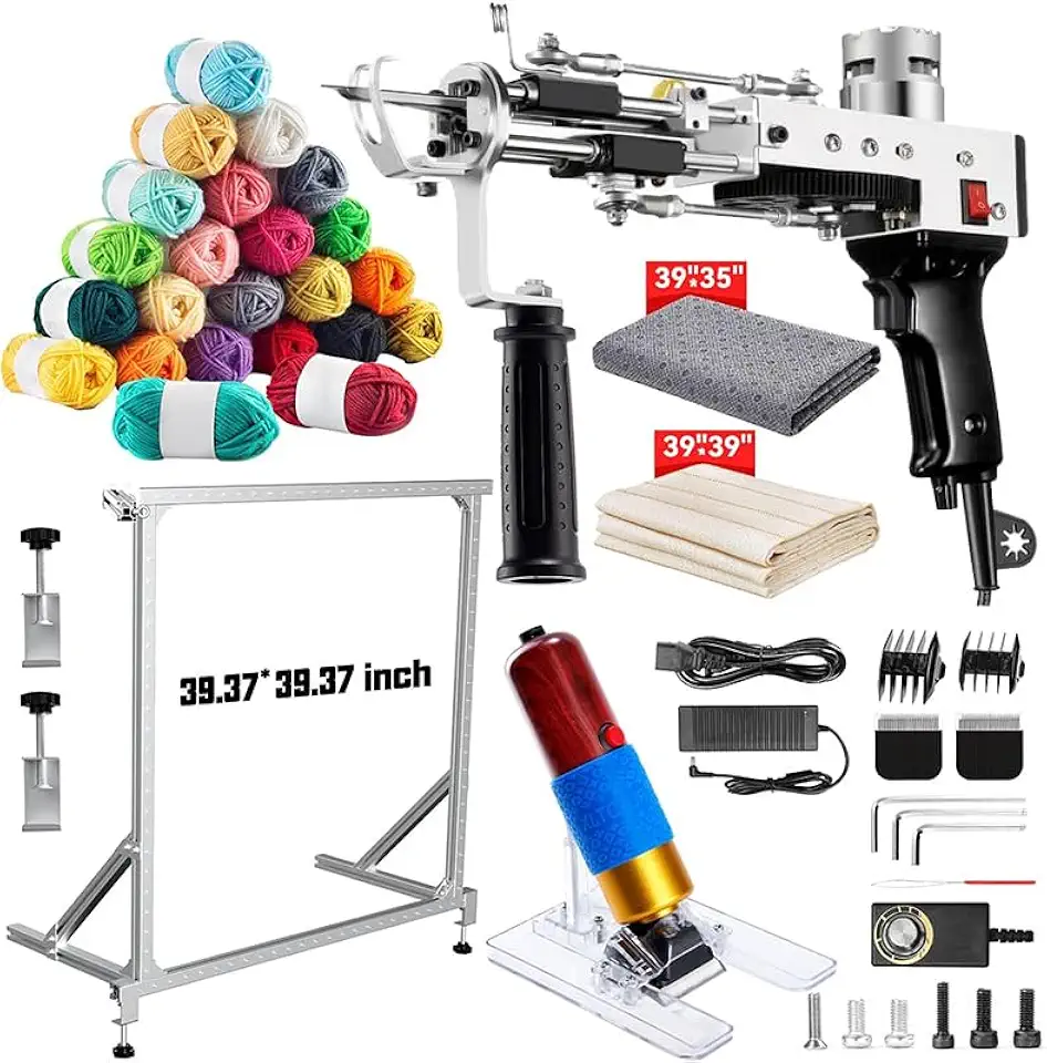 BESGEER Rug Tufting Gun Starter Kit with Metal Frame with Carpet Trimmer - Rug Tufting Gun Kit with Carpet Trimmer Kit with Tufting Frame, 2 in 1 Cut & Loop Pile Carpet Gun& Carpet Carving Clippers