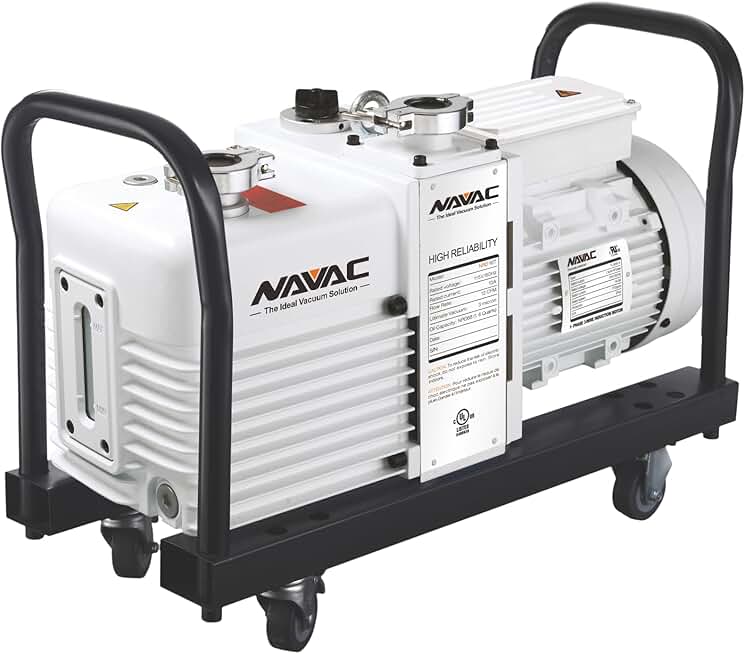 NAVAC NRD16T Industrial Vacuum Pump for Heavy Commercial and Industrial Applications | 12 CFM, 3 Microns | High-Performance Oil Mist Filter and Carry Cart Included | 1 Year Warranty