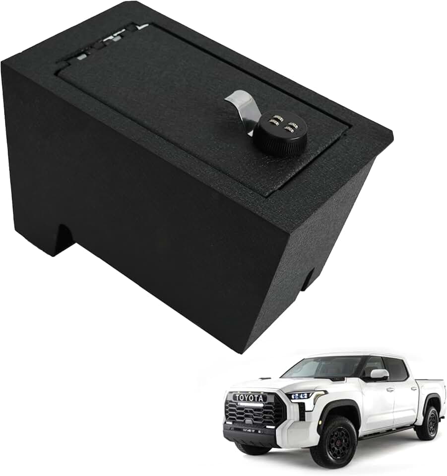 Center Console Safe for Car, In-vehicle Lockbox Storage Compatible with 2022-2024 Toyota Tundra, 2023-2024 Toyota Sequoia, Heavy Rolled Plate Steel, 4-digit Lock